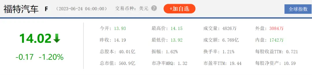 消息曝出后,福特股价再次下跌1.2%,每股股价为14.02美元,和31.97美元的高点相比,跌幅达56%,市值已经蒸发718.2亿美元。