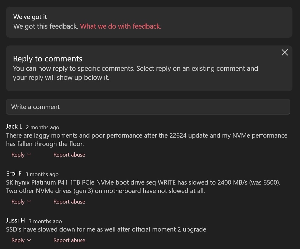 Windows 11的更新再次伤透了用户们的心。自今年3月份以来,用户就发现在Windows 11上执行大型文件的磁盘传输任务时,会遭遇明显变慢的情况。Feedback上类似的吐槽同样不少,甚至包括最近的6月更新和7月更新安装后,都无济于事。