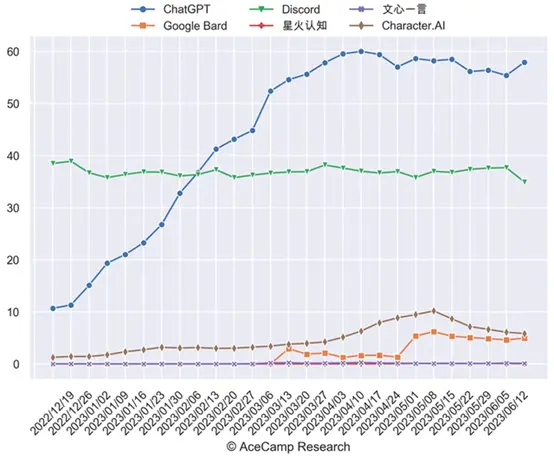 据咨询服务机构AceCamp整理的数据,几乎所有的AI聊天机器人,在用户数量上的增长都已停滞,甚至开始出现下降趋势。