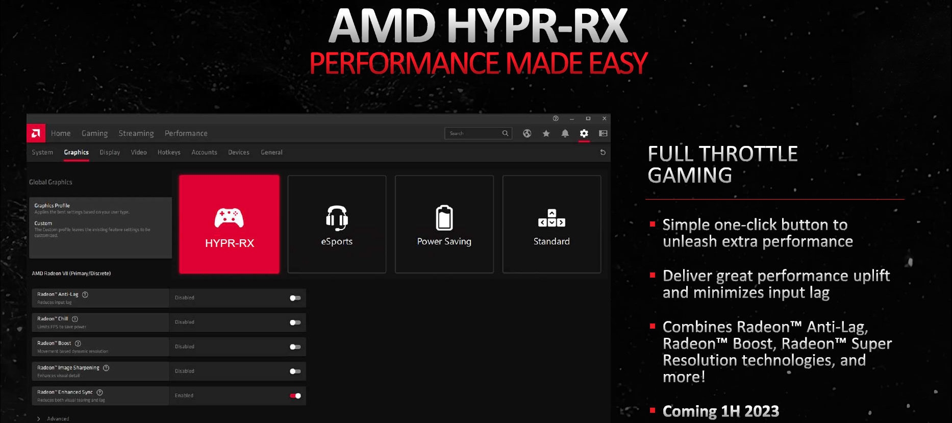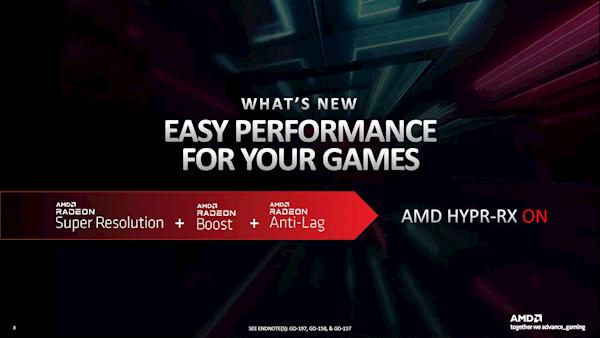 HYPR-RX简言之就是集成了三大性能优化功能,分别是Radeon超分辨率、Radeon Boost和Radeon Anti-Lag,玩家只需要一键开启,就能最大化游戏性能。