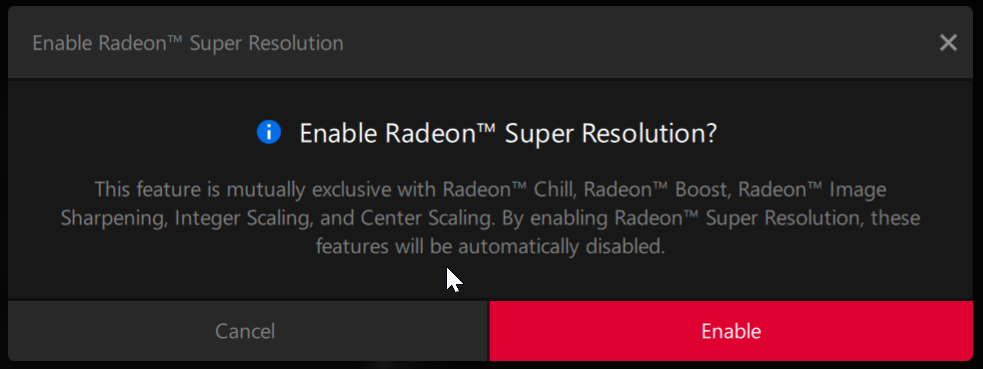 可是目前为止AMD并没有上线HYPR-RX,更尴尬的地方在于,目前Radeon超分辨率技术和Radeon Boost功能甚至是互斥的。