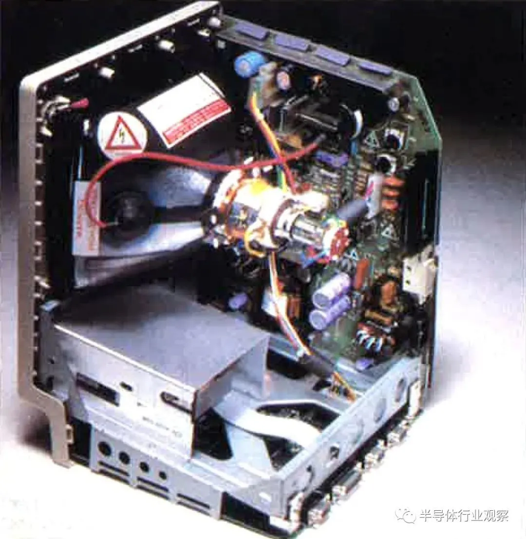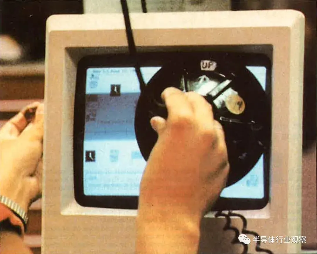 由于乔布斯先生非常重视将 Macintosh 包装在桌面上占用很小的空间,因此采用了垂直设计,将磁盘驱动器放置在 CRT 下方。