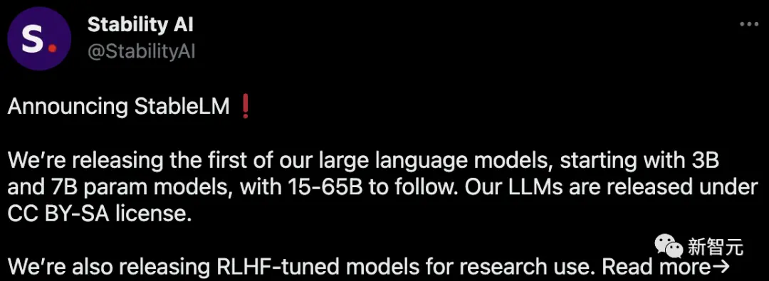 Stability AI的模型从3B和7B参数开始,随后会有15B到65B的版本。并且他们还发布了用于研究的RLHF微调模型。