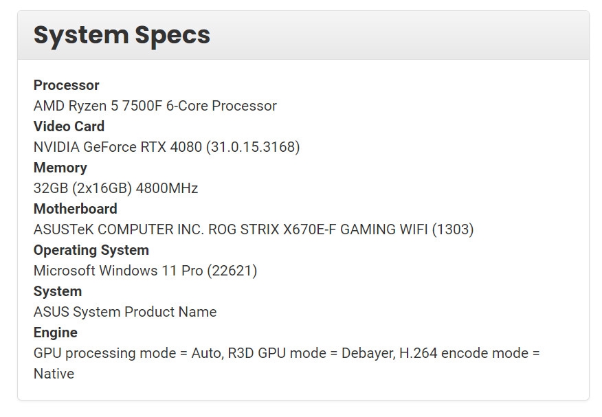 Puget Systems测试数据库里出现了一款别致的AMD处理器,名为“锐龙5 7500F”,这是第一次看到F后缀的AMD处理器。Intel那边,F后缀代表无核显,但不知道AMD这里什么意思,Puget Systems也没有检测出任何规格信息。