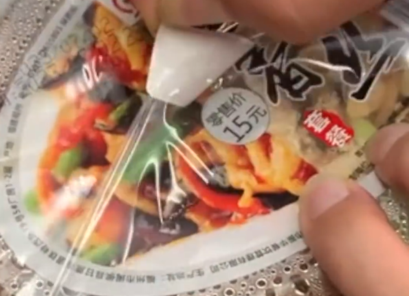 但意外的是,撕开外层价签后,下面还有一个标着该盒饭原零售价15元的价签。