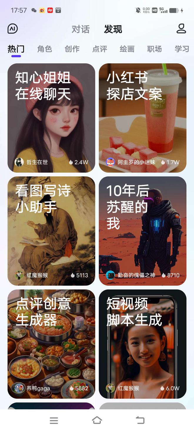 7月4日消息,记者发现,百度上线了文心一言App,获得体验资格的用户可以在网页版进行下载。未获得体验资格的网友,需要排队等待。目前来看,文心一言App具备语音对话、灵感小工具、看图写诗等多种AIGC(人工智能生成内容)能力,内含“对话”、“发现”两个主要功能。在文心一言App“发现”功能内,还含有“热门”、“角色”、“创作”、“点评”、“绘画”、“职场”等玩法。