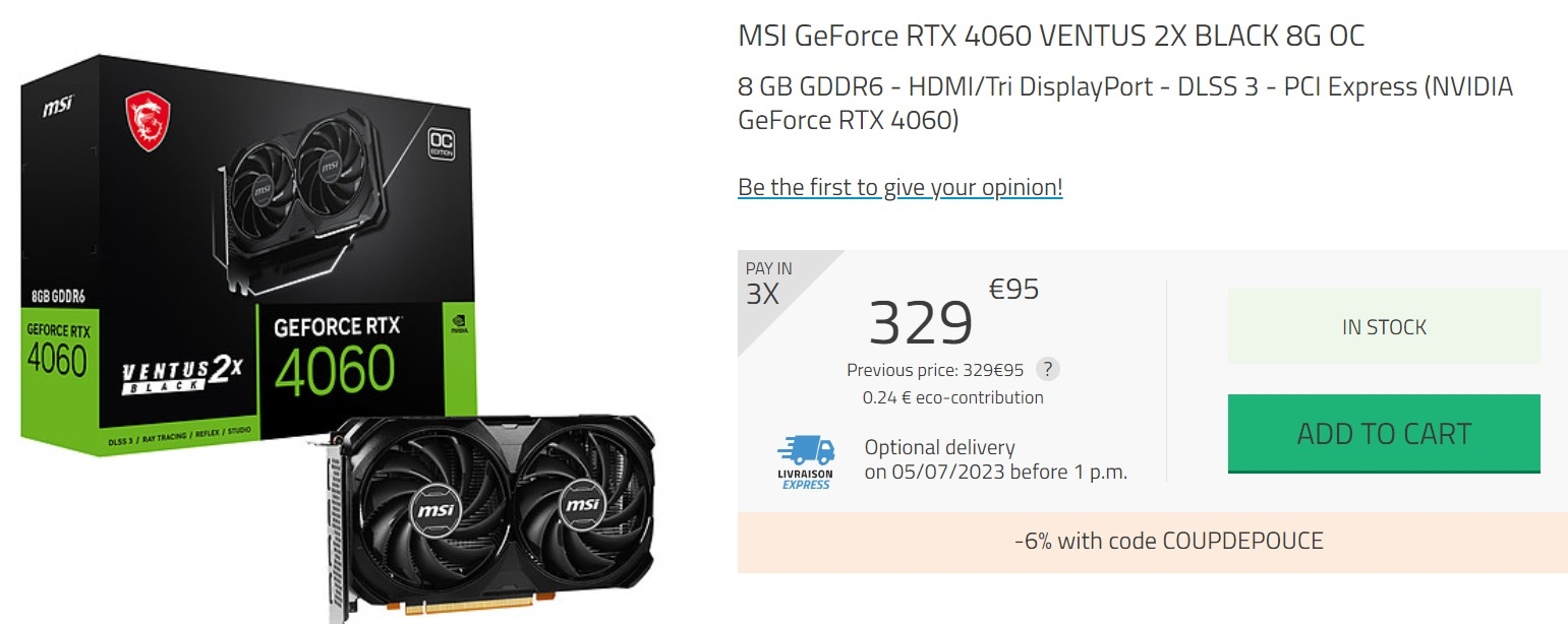 同样是这块卡,法国零售商Hardware.fr表面维持原价,但同时给了6%优惠,到手价也是310欧元。