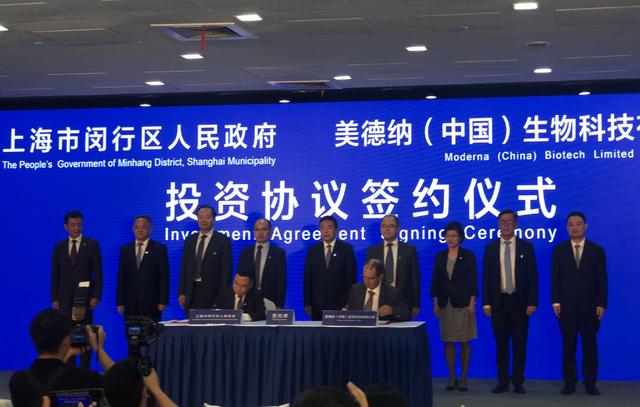 7月5日,美国疫苗厂商Moderna在中国注册不久的公司美德纳生物科技,在上海与闵行区政府举行投资协议签约仪式,标志着这家全球领先的mRNA疫苗公司正式落户上海,并在这里设立中国总部。