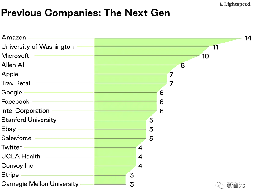 在调查受雇背景时,华盛顿大学再次出现,排名前列的还有亚马逊、微软和艾伦人工智能研究所(由已故微软联合创始人Paul Allen创办的研究机构)。