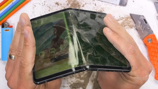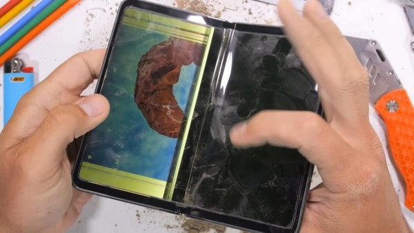 除了明火测试,该博主还进行了防尘测试和弯曲测试。防尘测试结果显示:GooglePixel Fold防尘能力弱,容易进沙;弯曲测试:当Pixel Fold以反方向折叠,大部分内部屏幕损坏,天线线路破裂。总的来看,根据以上测试结果,GooglePixel Fold的屏幕非常脆弱。