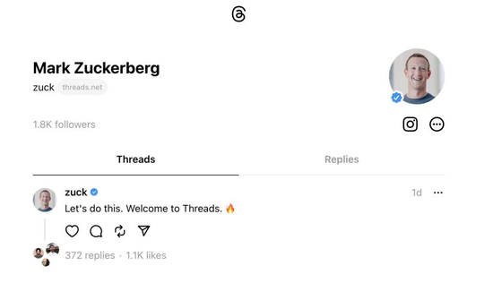 “我们开始吧。欢迎来到Threads”,扎克伯格在该新生平台上的第一条帖子中写道。
