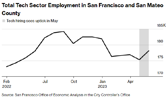 最新报告显示,在经历了数个月持续的岗位减少后,受AI领域火爆的推动,旧金山的科技公司5月份增加了招聘。旧金山的最新就业数据报告显示,在旧金山和邻近的圣马特奥县,5月份科技行业增加了2800个工作岗位。旧金山首席经济学家泰德·伊根(Ted Egan)表示,新增招聘意味着,自2022年末行业的裁员潮开始以来,该地区已经恢复了38%的工作岗位。