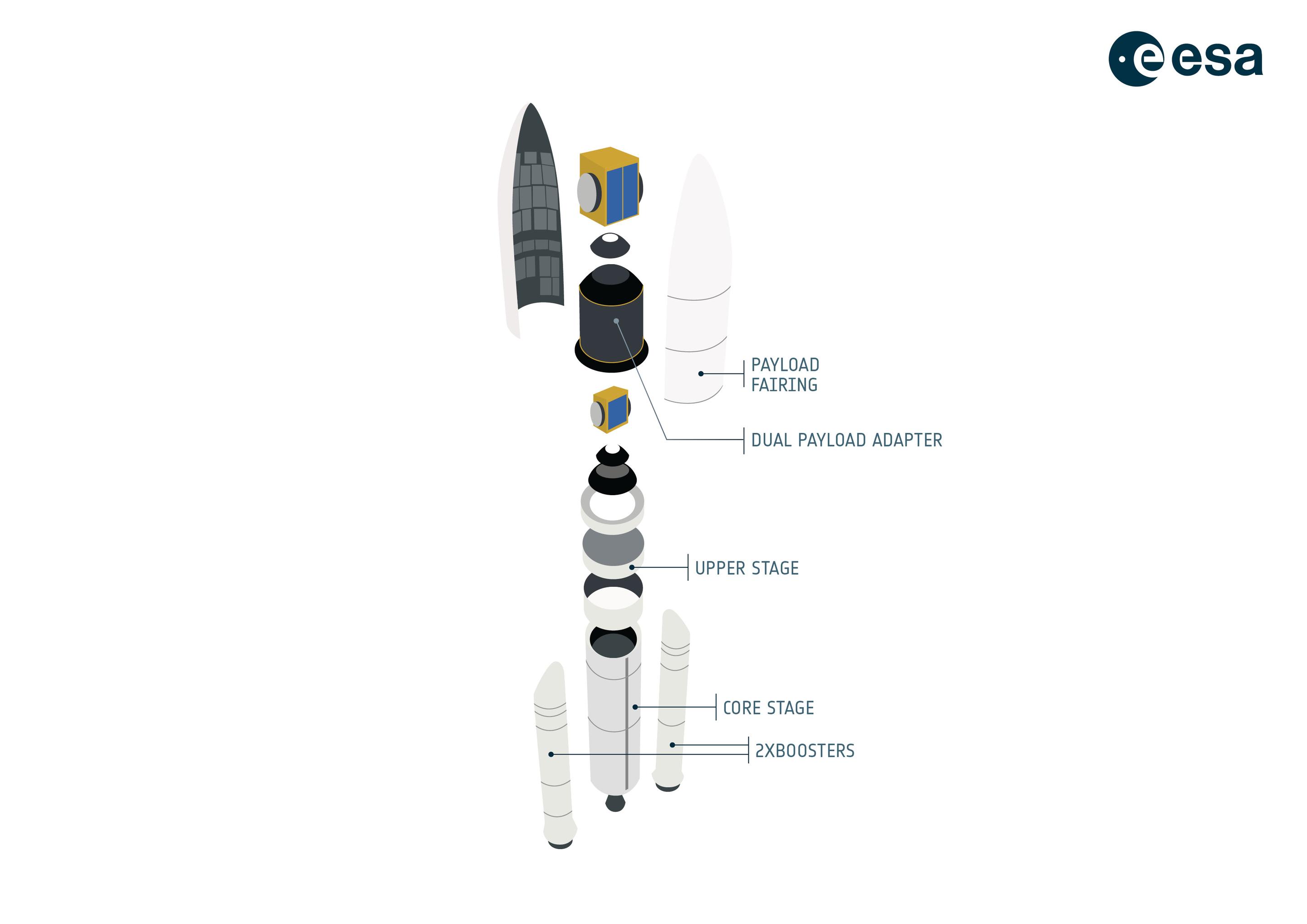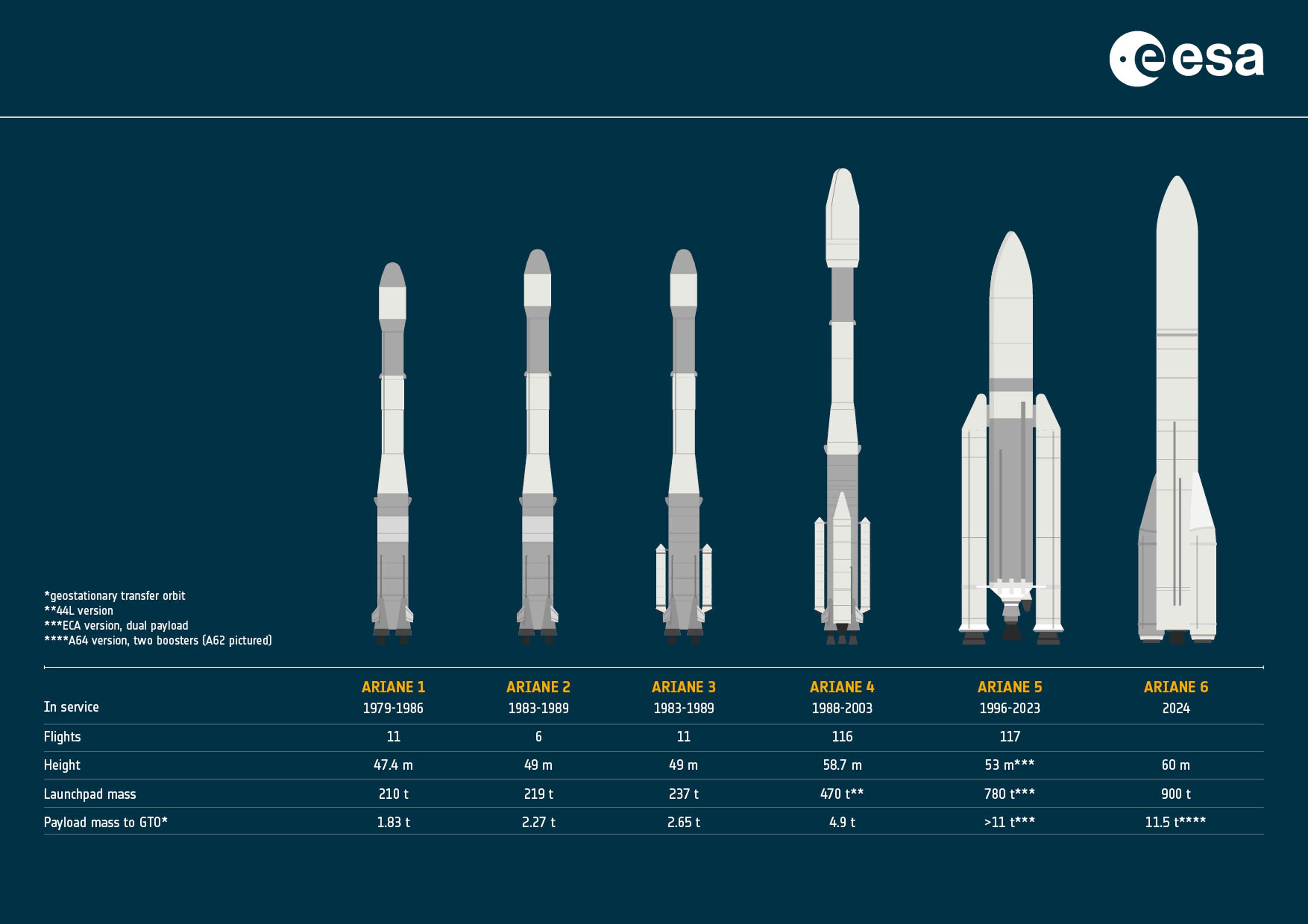 怀旧之情则来自于阿丽亚娜5号的古老历史。阿丽亚娜5号由法国国家空间研究中心(CNES)设计为消耗性发射系统,由阿丽亚娜集团建造,是欧洲最新和最大的阿丽亚娜火箭系统。尽管它同样被命名为"阿丽亚娜",但与阿丽亚娜1至4不同的是,阿丽亚娜5号是一个全新的两级液体燃料助推器,带有两个绑扎式固体燃料助推器,使其具有21000吨的低地球轨道有效载荷能力--是阿丽亚娜4的两倍。