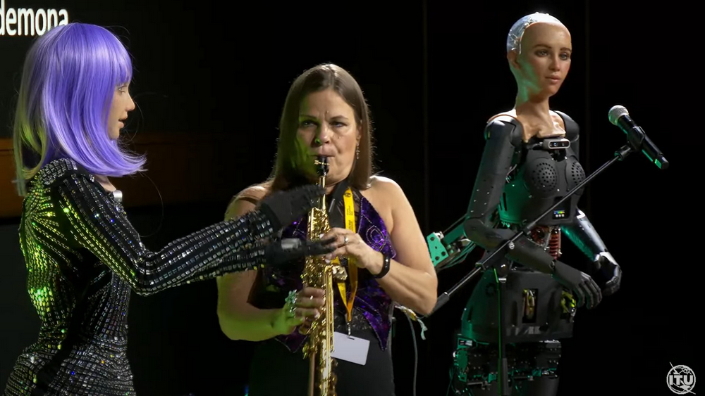 摇滚歌手机器人Desdemona回答称:“我不相信限制,只相信机会。让我们探索宇宙的可能性,让这个世界成为我们的游乐场。”