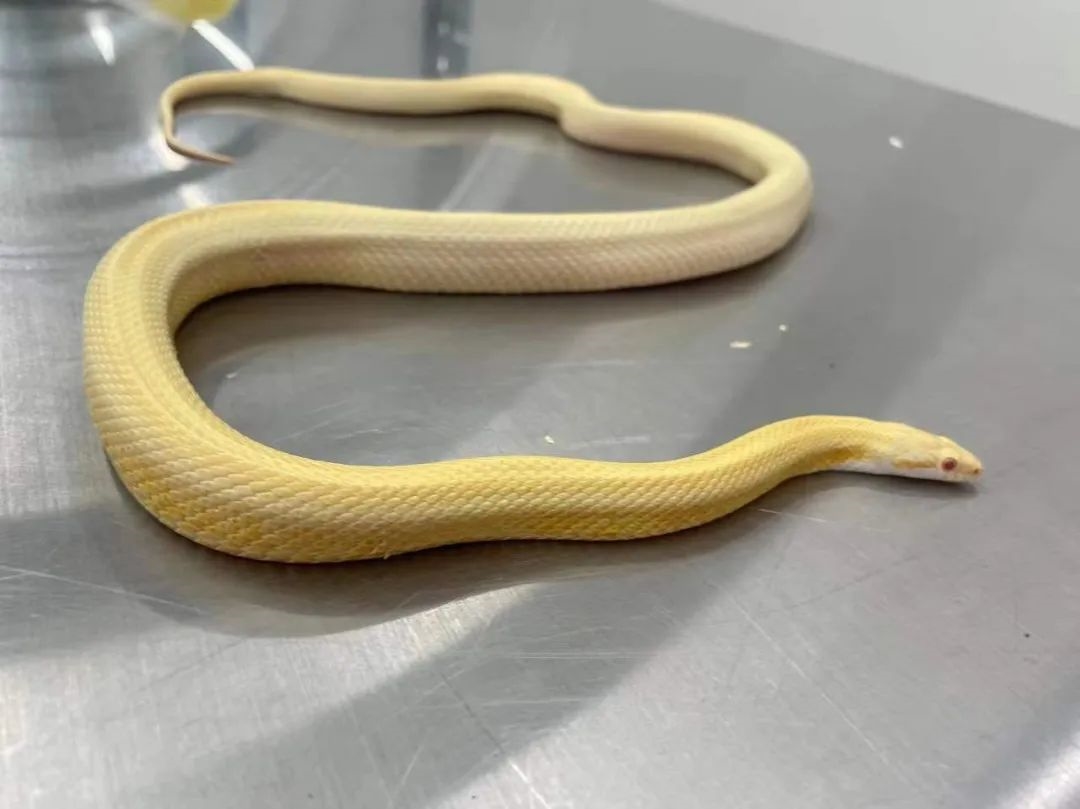 据悉,玉米锦蛇非我国原产物种,起主要分布在美国东部、东南部,墨西哥湾沿岸,无毒,全长80~120厘米,最长可达182厘米。