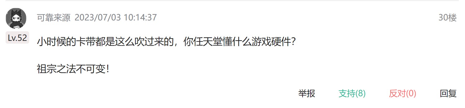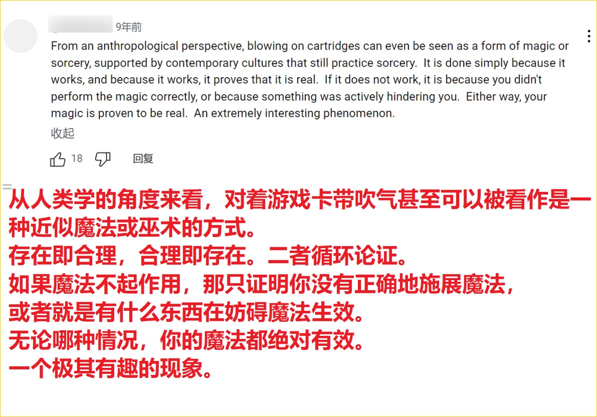 我很喜欢在搜索相关内容时,Reddit社区下一位老哥,面对帖子《震惊!原来往任天堂游戏卡吹气只是一种安慰剂,不仅没用还会损伤你的卡带》,留在四年前的热评“错误的,下一步你是不要告诉我,以后不准喝可口可乐了?”