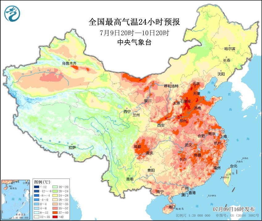 7月9日18时,中央气象台也继续发布高温橙色预警: