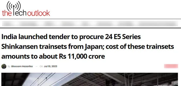 印度首个真正意义上的高铁项目——孟买-艾哈迈达巴德高铁项目(MAHSR)正在加速落地,其执行机构印度国家高速铁路公司(NHSRCL)已启动招标,计划从日本采购24列E5系列新干线列车,这些列车的成本约为1100亿卢比,折合人民币约为96亿元。