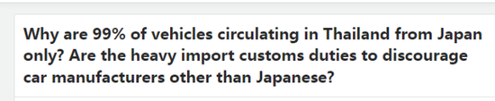 日本车企“统治”了六十年的泰国市场,要变天了?要说最爱日系车的国家有哪些,泰国绝对可以排得上号。到过泰国旅游的人都知道,在泰国的街上,放眼望去几乎都是日系车。泰国人有多爱日系车呢?在问答网站上,甚至有人提问:为什么泰国街上99%都是日本车?