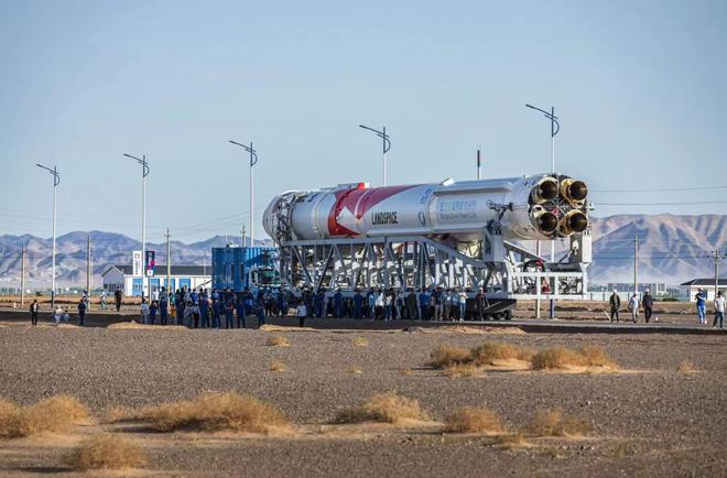 准备发射的朱雀二号遥二液氧甲烷运载火箭 图片来源:蓝箭航天