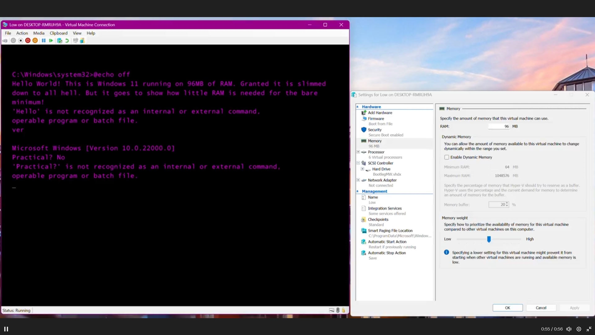有趣的是,另一位开发大神Xeno随后指出,纯文本的Windows 11可以跑在96MB内存下,对此,NTDev指出那毫无意义。