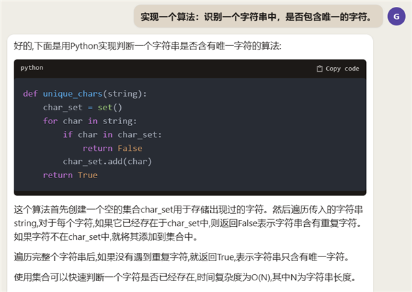 可以看到,Claude 2的中文还是很溜的,不仅分析了代码,而且还介绍了算法的复杂度。