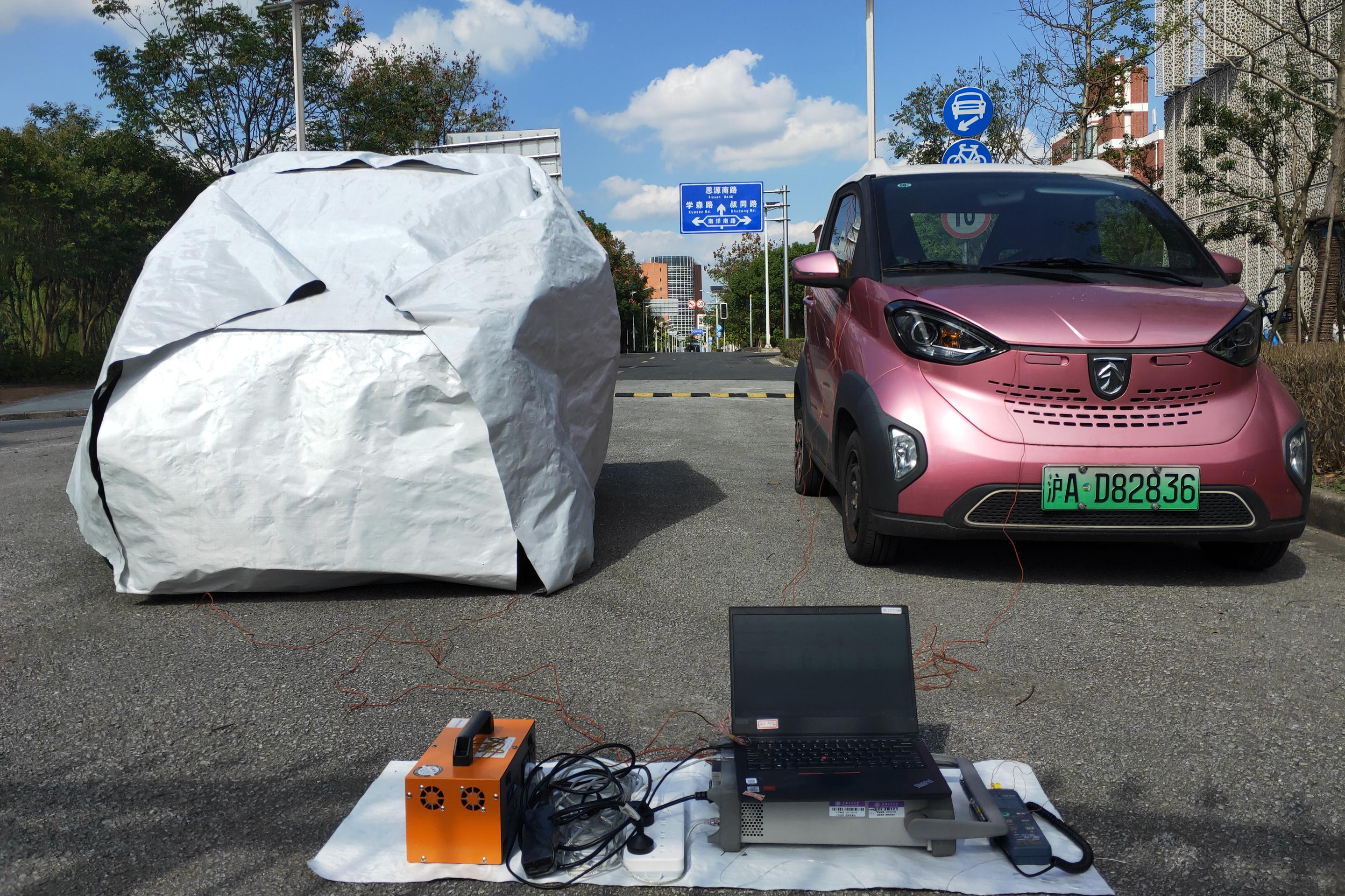 在上海进行的户外测试中,一辆披着斗篷的电动汽车比室外白天的温度总共低了 7.8°C (14°F)。 午夜时分,环境温度大幅下降后,有顶棚的汽车温度比室外温度高 6.8 °C (12.2 ºF)。