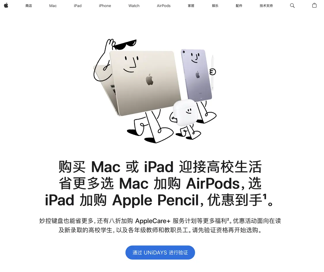所有符合苹果教育优惠资格的用户,即中国大陆高校在读生、刚刚录取的高校新生、硕士及博士研究生、代表子女购买的高校学生家长,以及公立或私立幼儿园、小学、中学、高校的教师及教职工,均可在苹果官网或Apple Store零售店经过身份验证后参与活动。