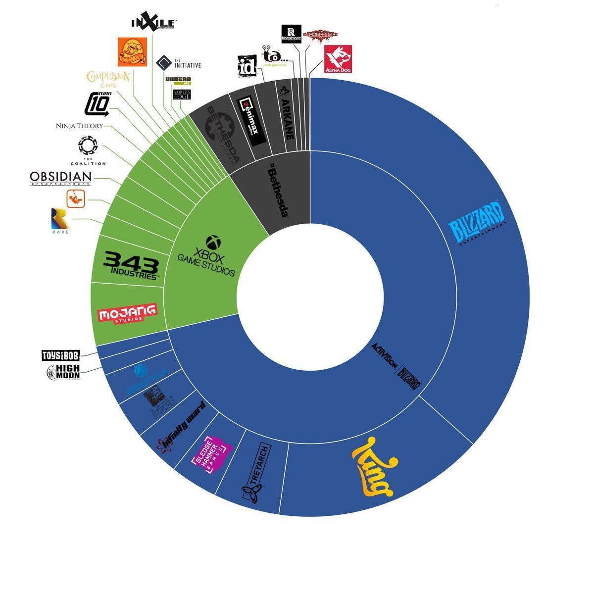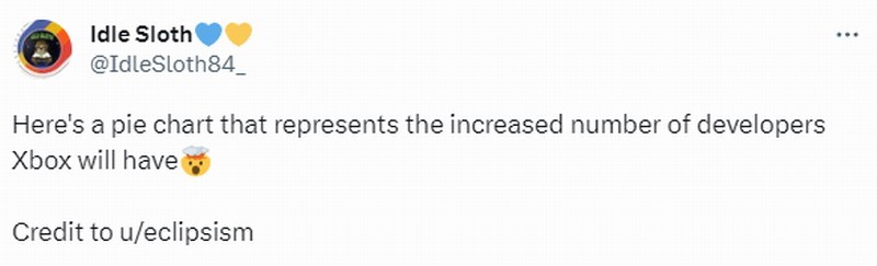 最近消息人士IdleSloth84_在推特上分享了一张图(来自u/eclipsism),假如微软成功收购动视暴雪后,Xbox拥有的开发人员数量将会暴增。