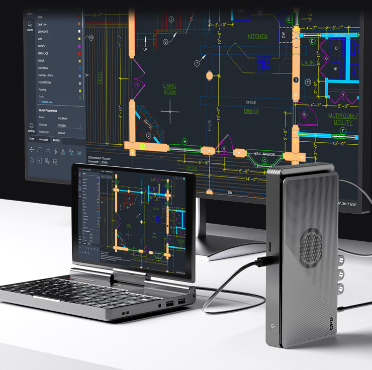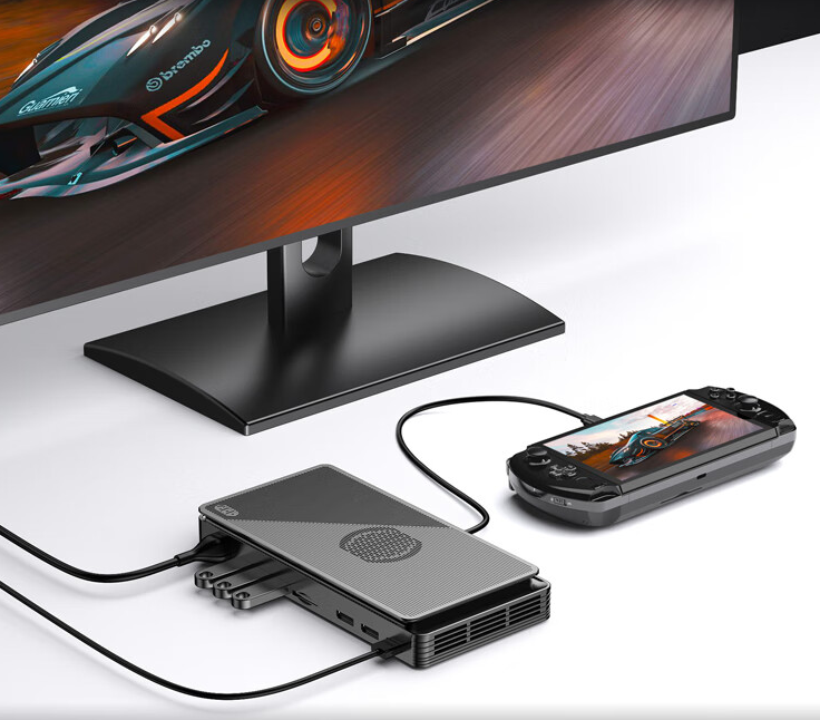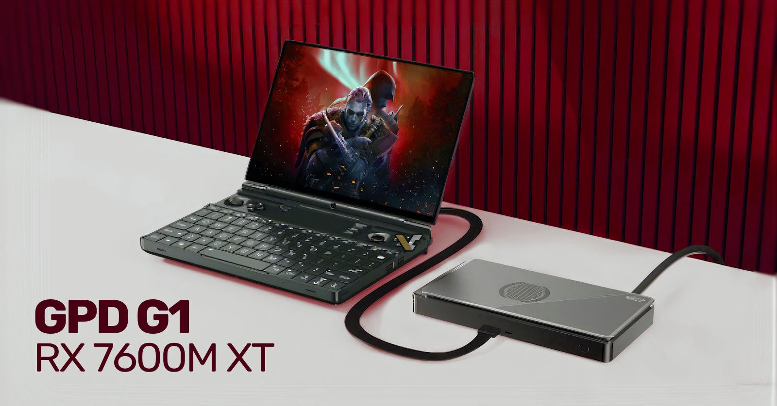 GPD发布了旗下首款外置显卡扩展坞产品“GPD G1”,配备了AMD RDNA3架构的移动版RX 7600M XT,可用于搭配自家游戏掌机,或者笔记本、迷你机等。GDP G1扩展坞的体积只有225x111×29.8毫米,重量约920克,与一台掌机相当,可握于掌中,可横放可竖放。