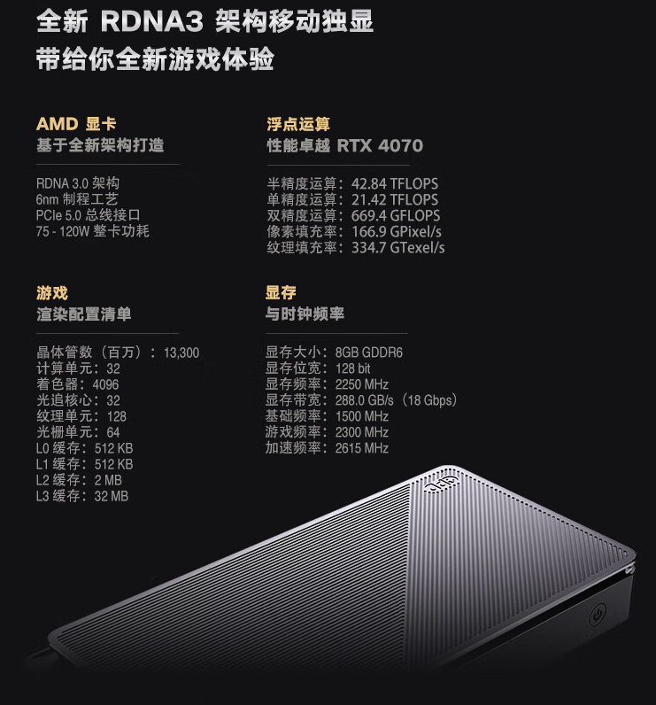 按照GPD给出的数据,它的性能可以超越移动版RTX 4060或者桌面版RTX 3070。