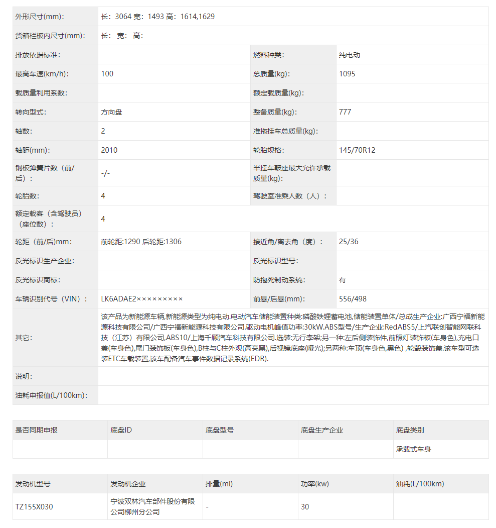 该车长/宽/高分别为3064/1493/1614(1629)mm,轴距2010mm,对比现款车长和轴距都有提升,内饰暂时未知,但透过申报图可知,其前排配备了一体式座椅,同时还拥有液晶屏和疑似中控屏。