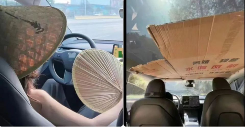 看到网上对全景天窗的吐槽,司机带着草帽,手里拿着扇子,后排乘客全副武装,防晒衣、墨镜、遮阳伞一样不少,头顶的全景天窗也用一块旧报纸遮住,刘彤表示,“这些操作真的是一点都不夸张。”