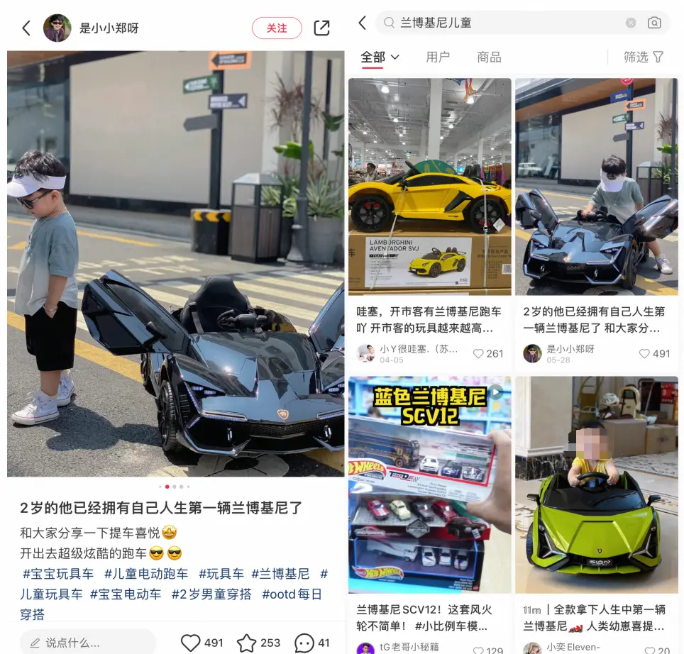 早在2020年,兰博基尼就曾和九号有限公司共同打造一款高性能卡丁车,售价9999元。在设计上,这款卡丁车融入了经典的兰博基尼元素,比如方便夜晚驾驶的“冰湖蓝”LED车头灯、车尾采用空气动力学尾翼等。在性能上,提供四种驾驶模式:安全模式限速8km/h,新手模式限速18km/h,运动模式限速28km/h,赛道模式限速40km/h,最大时速达40km/h。这款卡丁车同样面向儿童市场,在社交平台上以“送给儿子的酷炫礼物”面貌高频出镜。