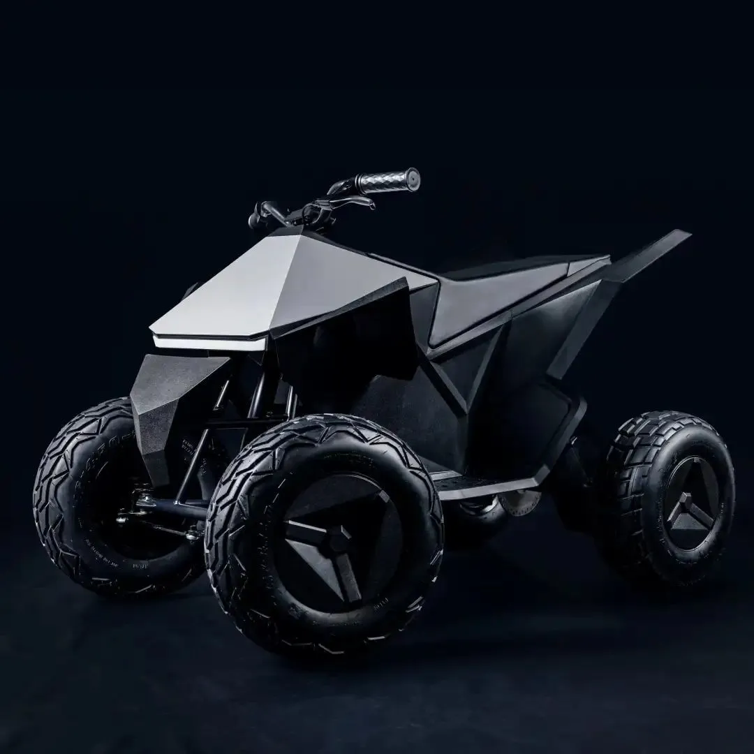 特斯拉为2023款玩具车配备了一个两阶变速机构,最高时速可达8km/h,充满电的最高续航则为13公里,同时车辆被拆分成十多个组件,需要自行完成组装,强调了调动孩子的动手能力。而在设计语言上,无论是2021款还是2023款Cyberquad,都延续了和特斯拉电动皮卡Cybertruck相同的“赛博朋克”风格,且配备了特斯拉标志性的 LED 大灯和尾灯。