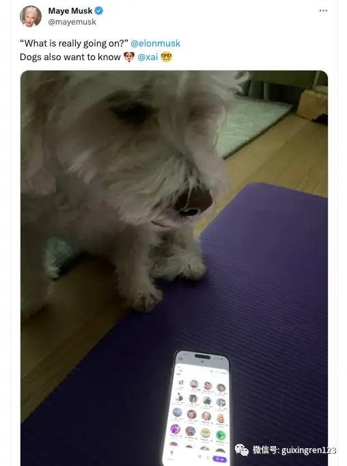 在两天前马斯克高调宣布成立xAI公司之后,很多人都对这个全新的、似乎不走寻常路的AI公司充满了好奇。就连马斯克的老妈Maye Musk今天也带着自家小狗早早地守在了Twitter Space活动上,想要知道马斯克这次究竟是想要搞什么大事情。