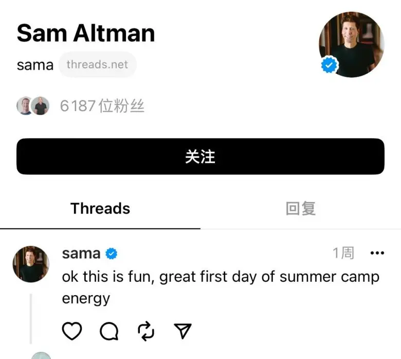 OpenAI的CEO萨姆·阿尔特曼(Sam Altman)只发布过一条消息:“OK很有趣,很棒的夏令营第一天的氛围。”此后,这个有趣的平台没有再吸引阿尔特曼发布和转发任何内容,尽管他活跃在Twitter上。