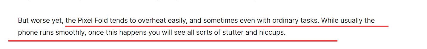 与此同时,谷歌Pixel Fold缺点同样突出。第一点是发热严重,即便是不玩游戏,在日常使用中谷歌Pixel Fold很容易出现过热情况,一过热就会卡顿、反应慢,这跟三星代工的Google Tensor G2处理器有一定关系。