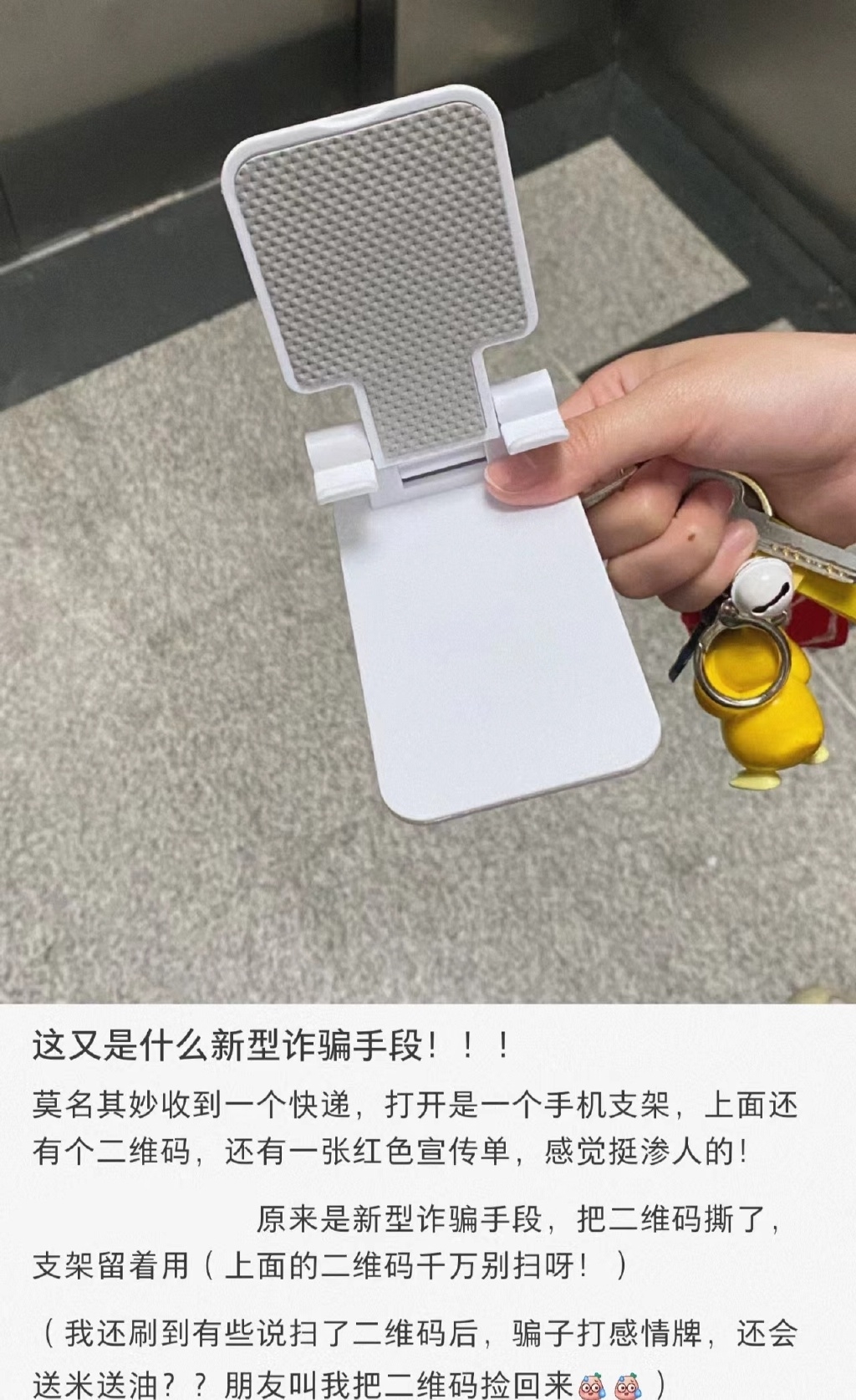 你有没有收到陌生人寄来的快递,打开后发现根本不是自己要的东西?这时候,你可要小心了,说不定就是个骗局。近期,不少网友纷纷反应,莫名其妙收到陌生快递,里边有的是手机支架,有的是刮刮乐,共同点是都带有一个二维码,刮开刮刮乐还会提示中奖。