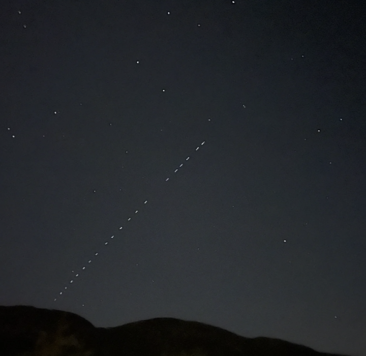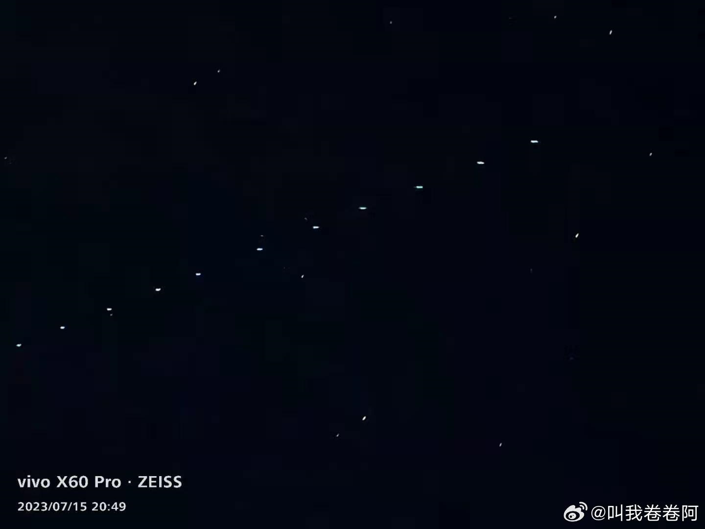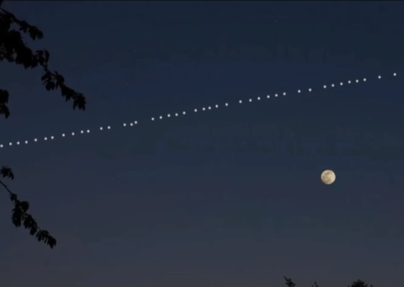 来自杭州等地的多位网友在夜空中发现不明飞行物,最多22个亮点整齐地连成一线划过,速度很快,非常壮观。有网友认为是UFO,但更多网友怀疑是不是马斯克旗下SpaceX公司的星链卫星。对此,有天文爱好者表示,这很可能就是SpaceX公司的星链卫星,因为这些卫星处于近地轨道,特殊情况下肉眼就可以看到。