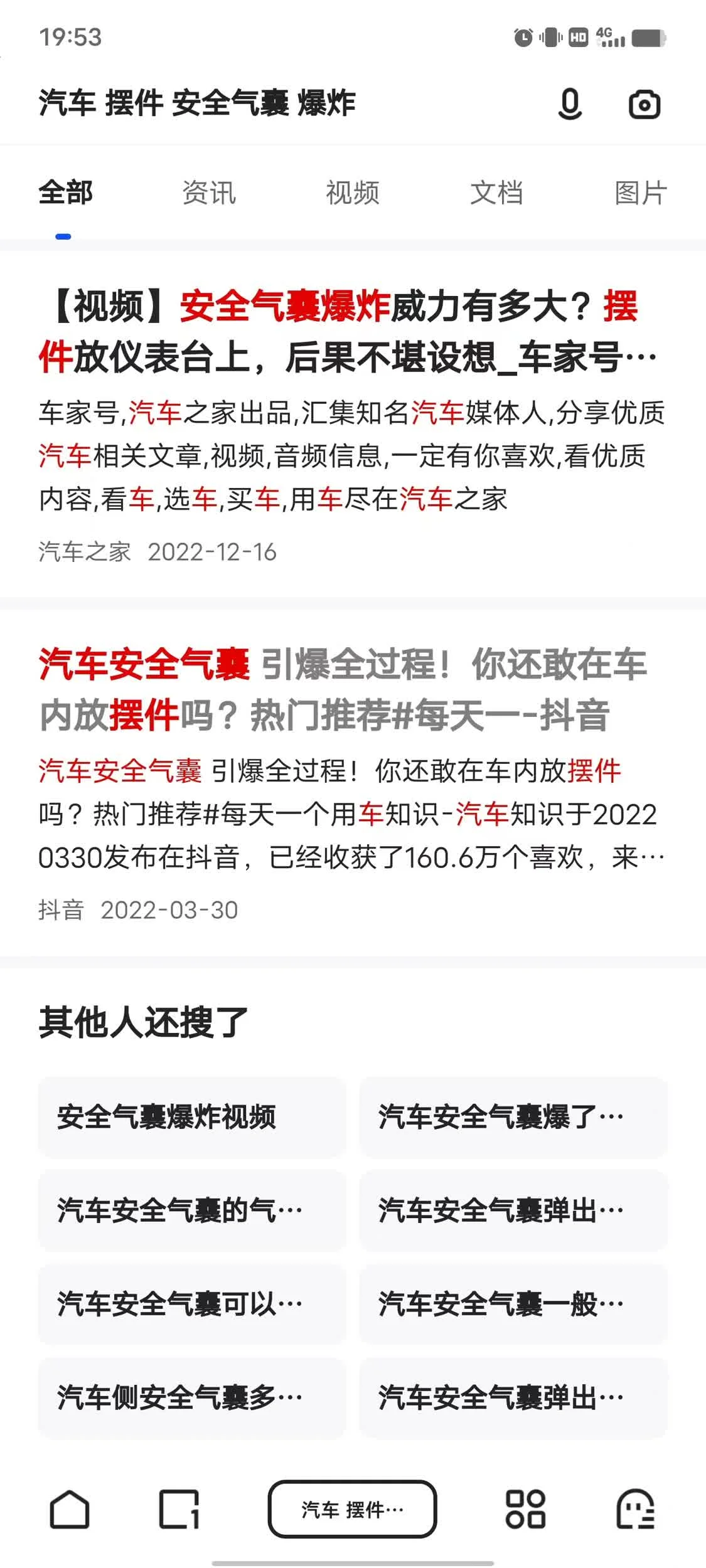 因气囊弹出带动摆件、装饰品,导致成员受伤的相关报道实在太少,能搜到的多数是好心提醒的测试科普视频。