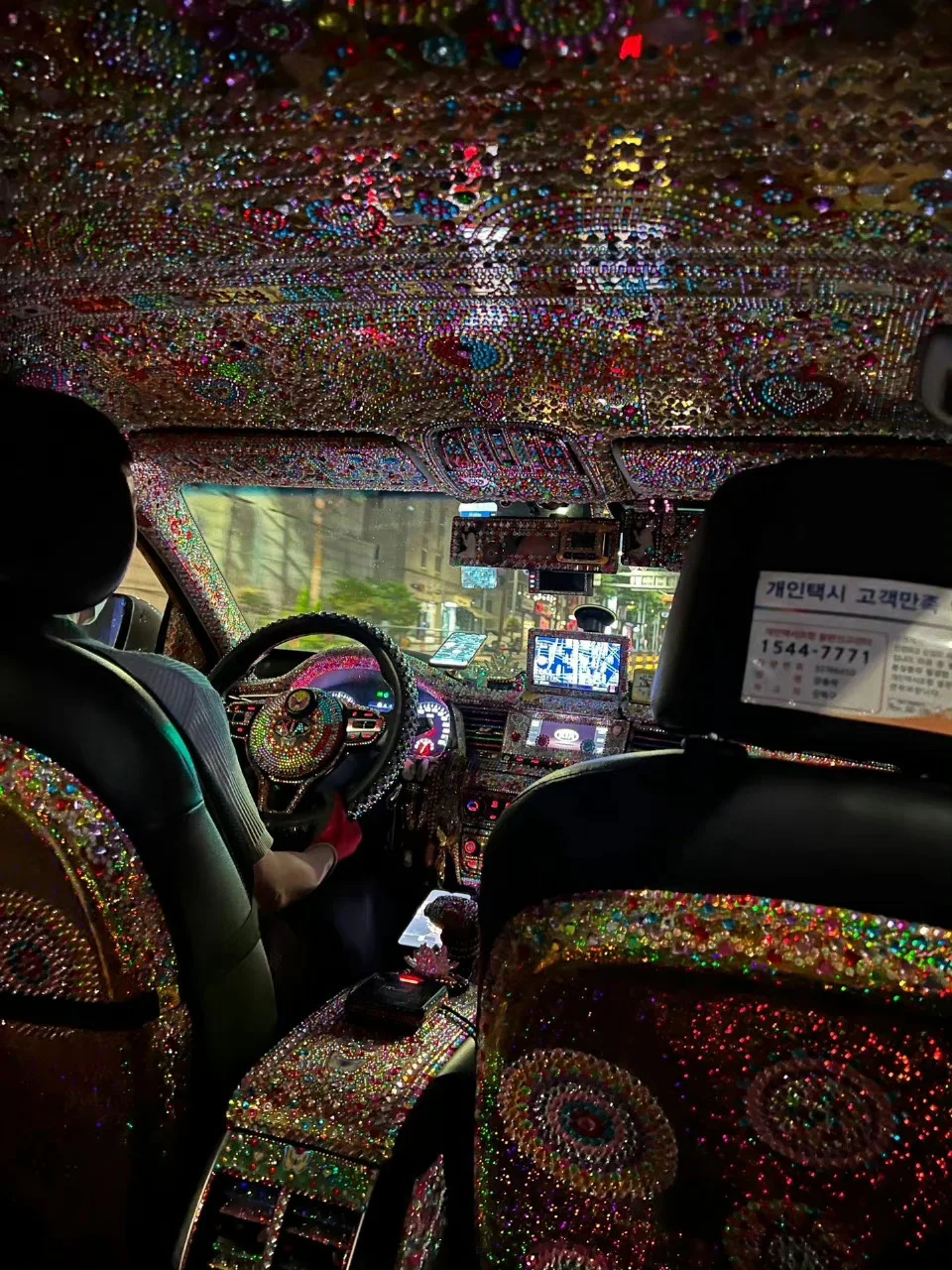 一位网友发出来的首尔出租车的图片,看的我更是心惊胆战,车内几乎所有可以看到的表面都覆盖了彩钻......这要是触发了安全气囊,彩钻的杀伤力恐怕要比“阔剑地雷”高几个层次了。再说,贴那么多彩钻,里面的人真不觉得看着晃眼吗?