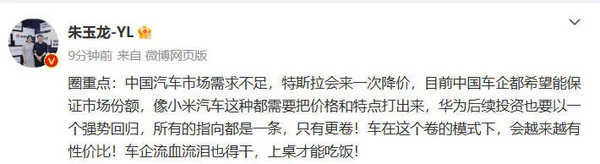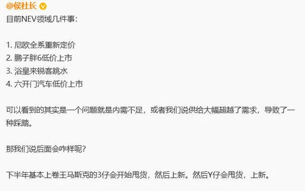 有多位汽车博主表示,目前中国市场上电动汽车的竞争较为激烈,很多汽车企业都希望能够保证市场份额。其中,特斯拉可能会在2023年下半年再次进行降价,以清理特斯拉Model 3和Model Y这两款车型的库存,然后上架新款车型。同时,在2023年下半年,中国汽车市场可能会更加内卷。