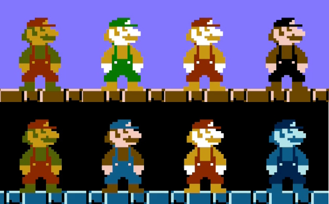 ·那么,问题来了,为什么回出现这种设计呢?实际上这跟当年FC红白机的机能有关系,由于成像与背景表现机能的限制,一个调色板只能表示三种颜色,于是开发者想出了这种方式实现了4种配色。