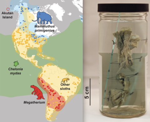 有一小块“猛犸”肉的标本被保存在耶鲁大学皮博迪自然史博物馆中,不过它的标签是“大地懒”,而不是“猛犸象”。图片来源:cgab.yale.edu