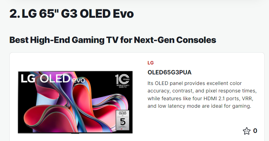 2、LG 65英寸G3 OLED Evo——适用于下一代游戏机的最佳高端游戏电视