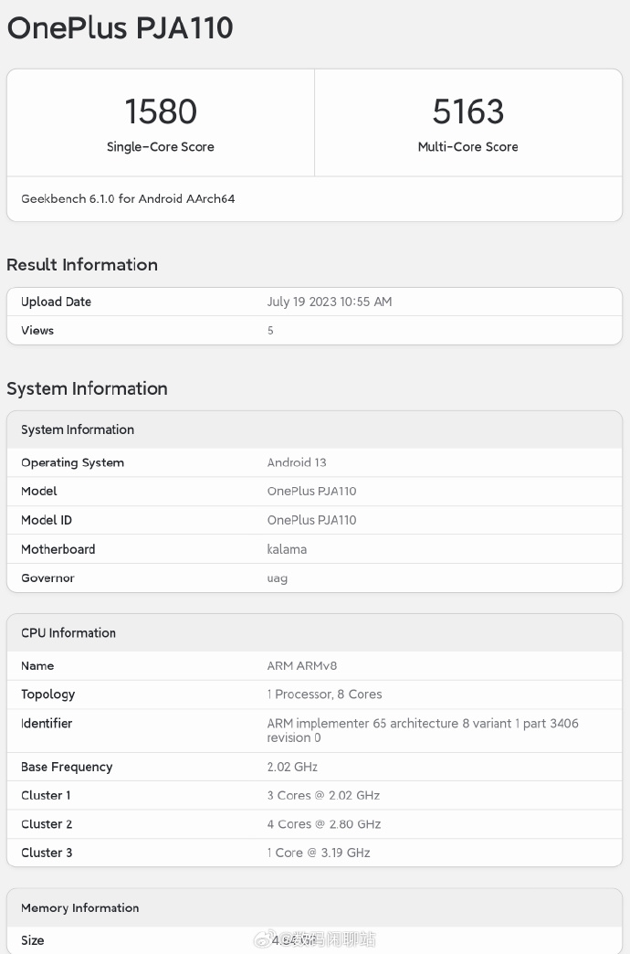 一款型号为“OnePlus PJA110”的手机出现了GeekBench数据库中。从详细参数来看,这款“OnePlus PJA110”大概率就是已经被不少用户催更的一加Ace2 Pro,而其至关重要的处理器,也确实如此前的传闻,是一颗骁龙8 Gen2处理器。