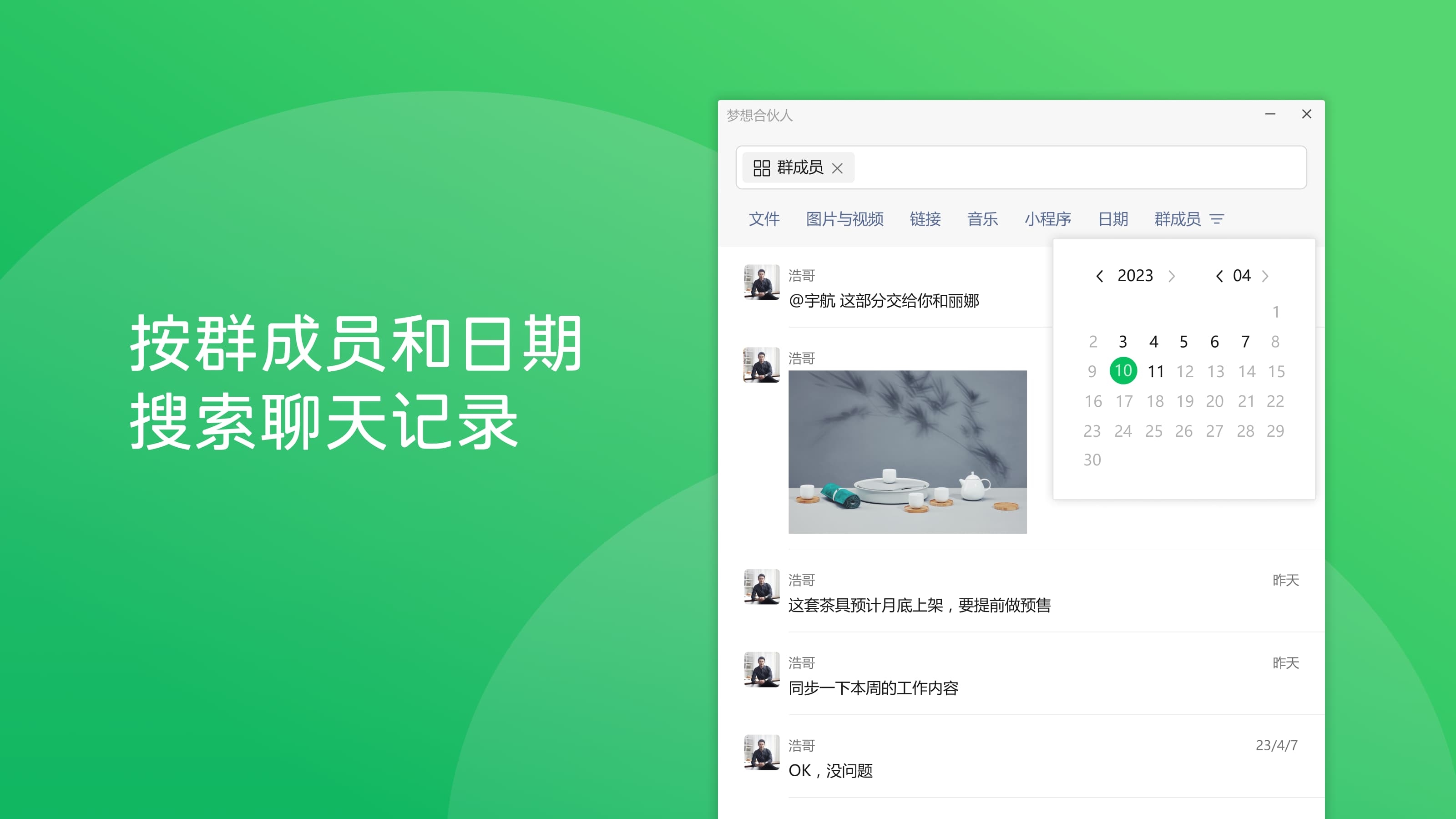 今日,微信正式发布Windows版3.9.6更新,更新后可以按群成员和日期搜索聊天记录,并修复了一些已知问题。经实测,更新后可在聊天页面点击右上角“...”选项,进入查找聊天记录页面,筛选条件新增“日期”和“群成员”分类,查找某个好友或指定日期的聊天记录更方便了。