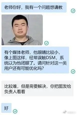 首先从客观来说,基于视觉识别的主动式DMS,对人脸的识别本身就有局限性。这里面最广为人知的案例,莫过于汽车博主@常岩因为眼睛小到无法被DMS系统识别而上了微博热搜一事。在常岩的叙述中的坦言,“2018年去美国试驾Super Cruise的时候,只要开始检测眼睛,就会判断我过度疲劳”。
