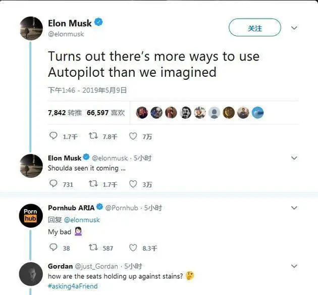 说到欺骗DMS,那不得不提的便是特斯拉。早在2019年,就有美国up主在全球最大的成人社区“P站”上传了一段视频。在这段“自制内容”中,她和男友在一辆开启了辅助驾驶Autopilot的特斯拉中来了一段激情体验。这段视频一度冲上了P站的热搜,甚至特斯拉CEO马斯克都专门进行了回应。